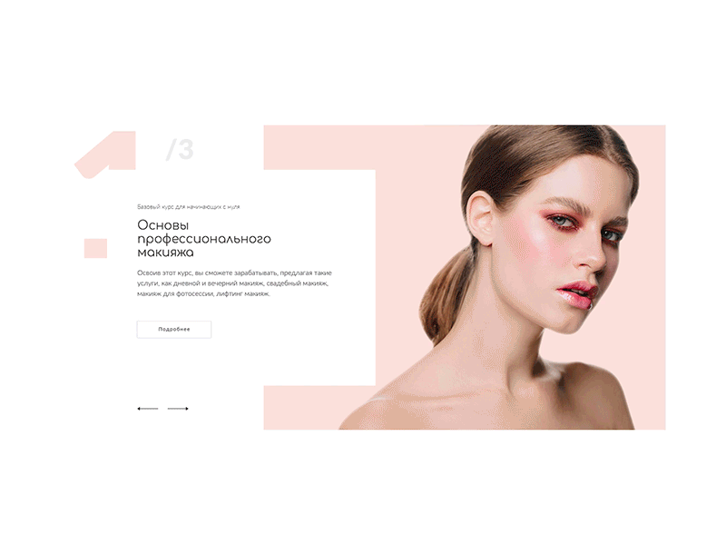 Я захотел показать, как преображается женское лицо во время нанесения макияжа. Почти сразу пришла идея зависимого скролла и смены фото. После утверждения концепции с заказчиком мы отправились в студию, начали снимать. Однако оказалось невероятно сложно поймать то же положение головы, что было на предыдущем дубле. Мы все отсняли, но я не был доволен результатом. Как только фото сменяло другое, было видно смещение головы в сторону. Я все думал, как нам быть, решил попробовать пустить штору, которая бы на секунду закрывала предыдущее фото. И вуаля! Все заработало. Вот такая история экрана первой анимации.